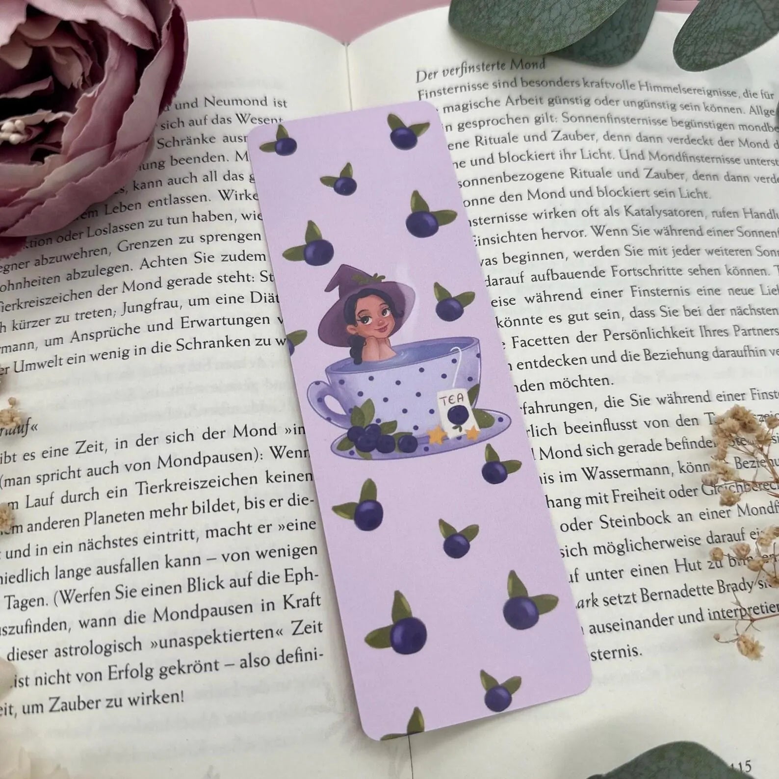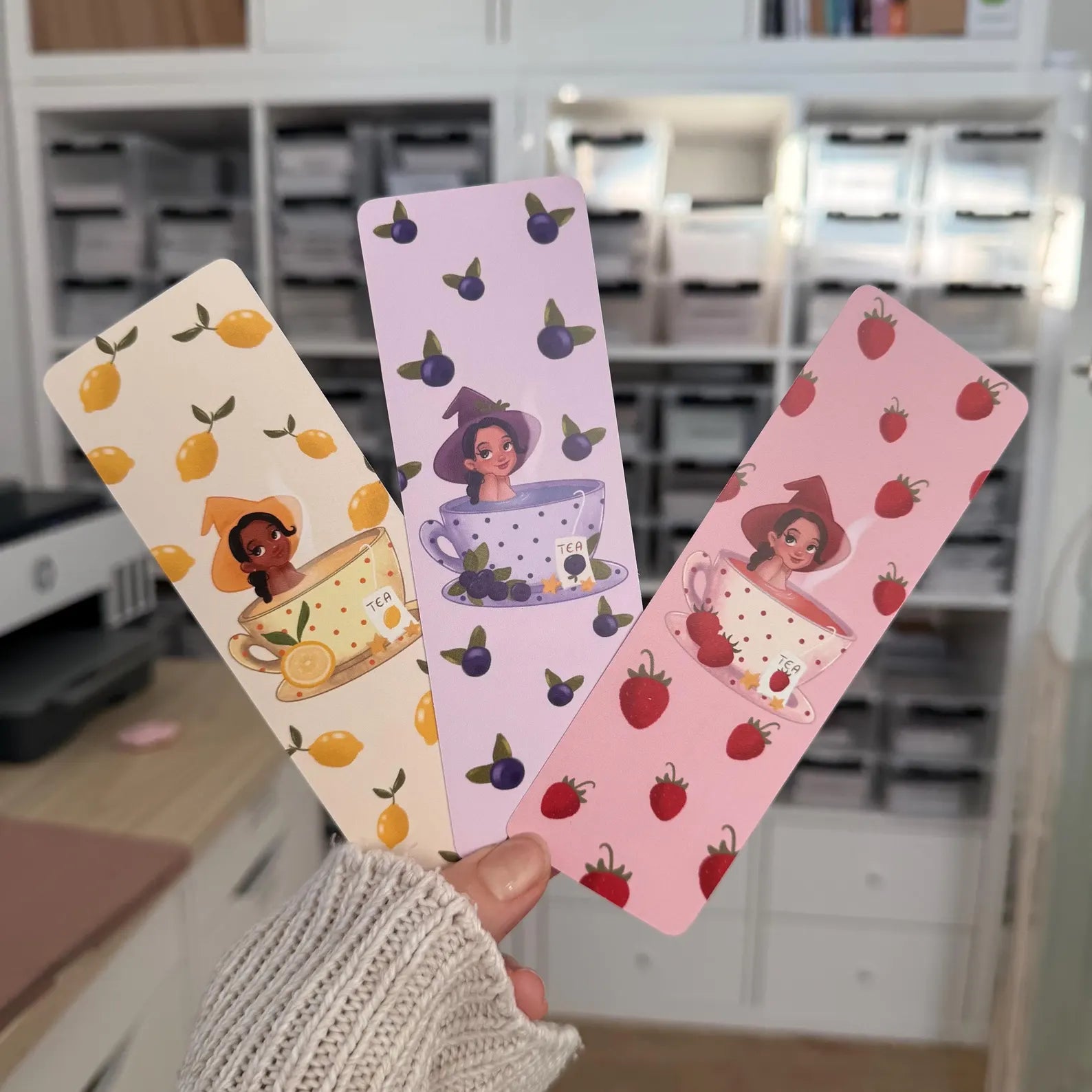 Lesezeichen Set- Teetasse Hexen mit Blaubeeren, Erdbeeren und Zitronen
