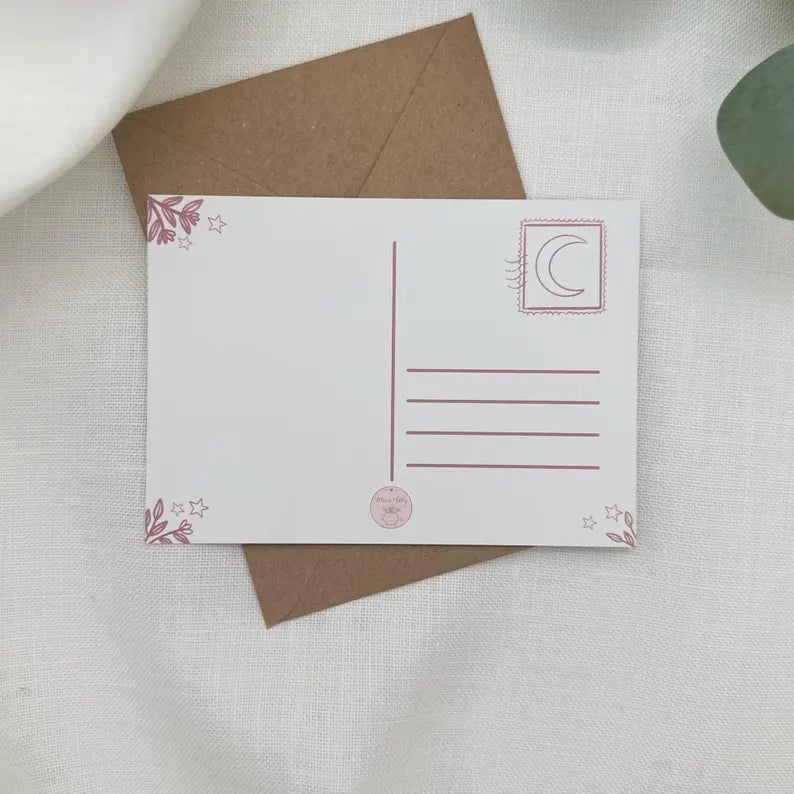 Diese liebevoll illustrierte Postkarte bringt das Gefühl eines entspannten Nachmittags im Coffeeshop direkt auf dein Papier – perfekt für alle, die moderne Hexenstimmung und Leseliebe zelebrieren.