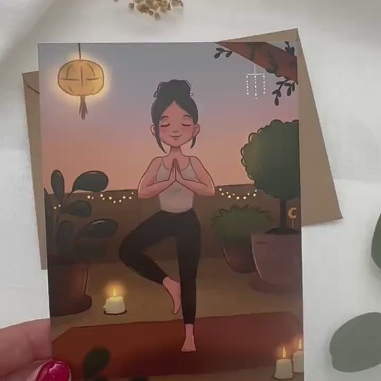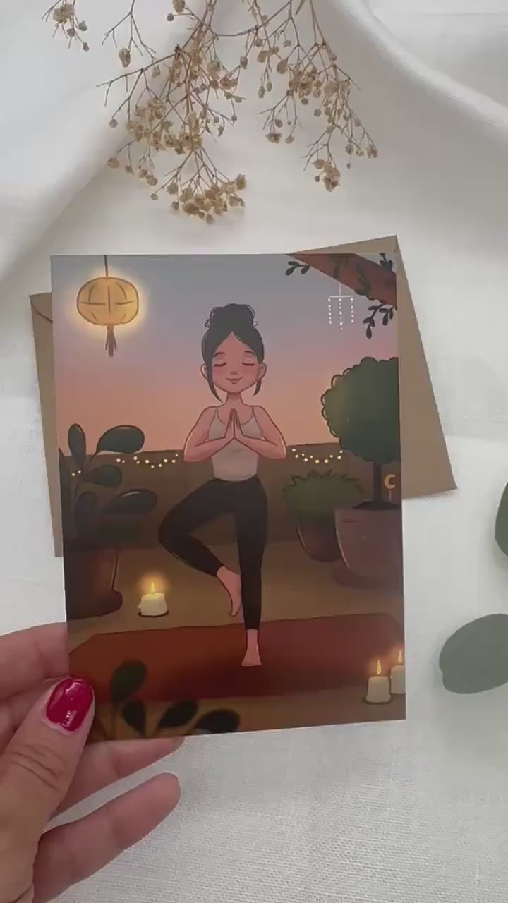 Postkarte Yoga Meditation - Achtsamkeit Karte DIN A6 - Illustration mit Umschlag - Selfcare Geschenk- Entspannung und Balance